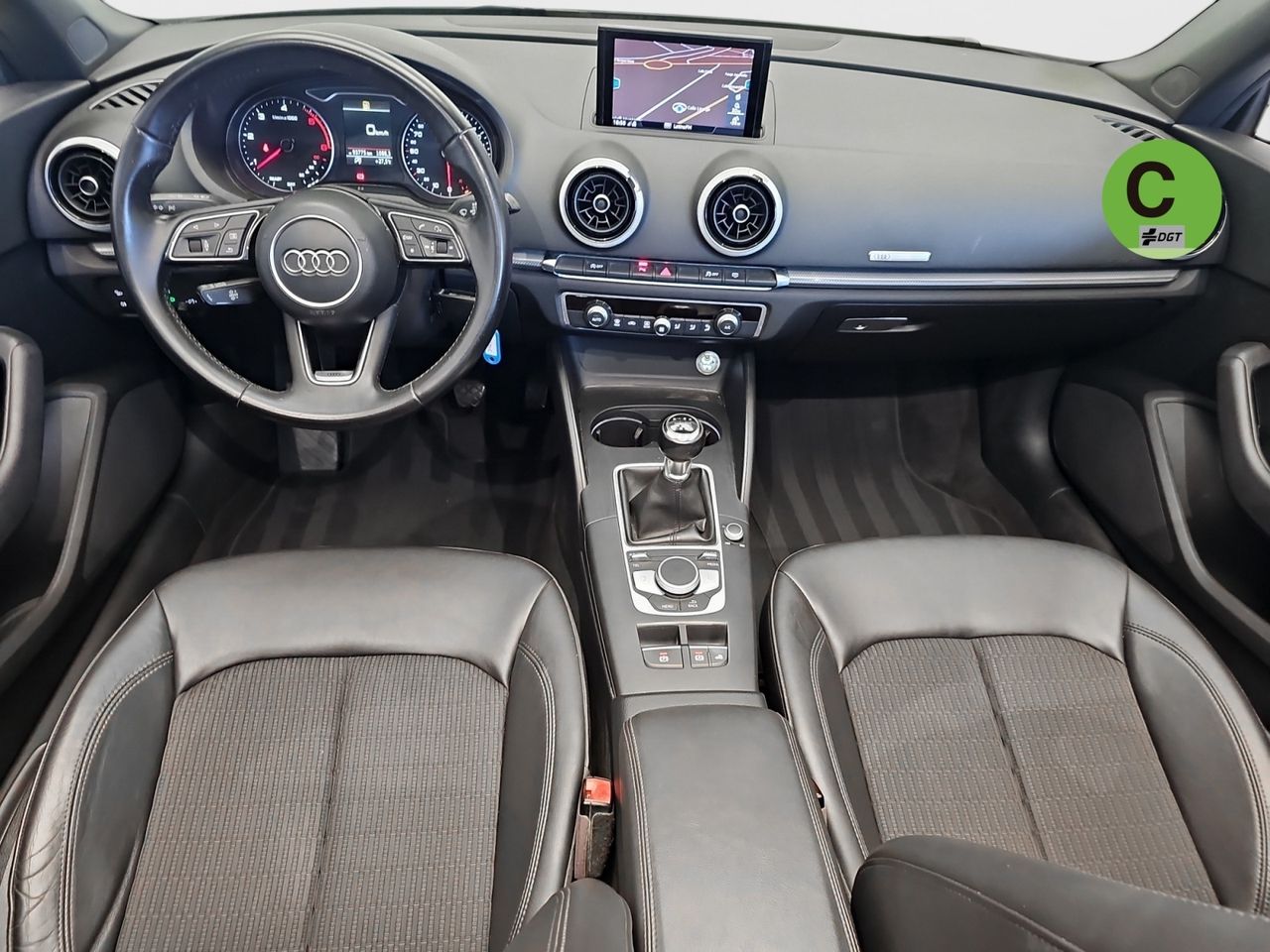 - Asientos de tela (material principal) y de cuero sintético (material secundario)