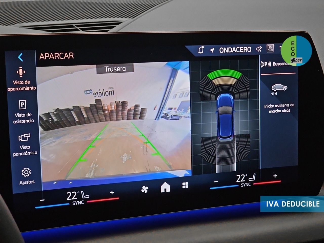 - Sistema de distancia de aparcamiento delanteros con sensor, sistema de distancia de aparcamiento traseros con sensor y cámara, sistema de distancia de aparcamiento en los lados con sensor