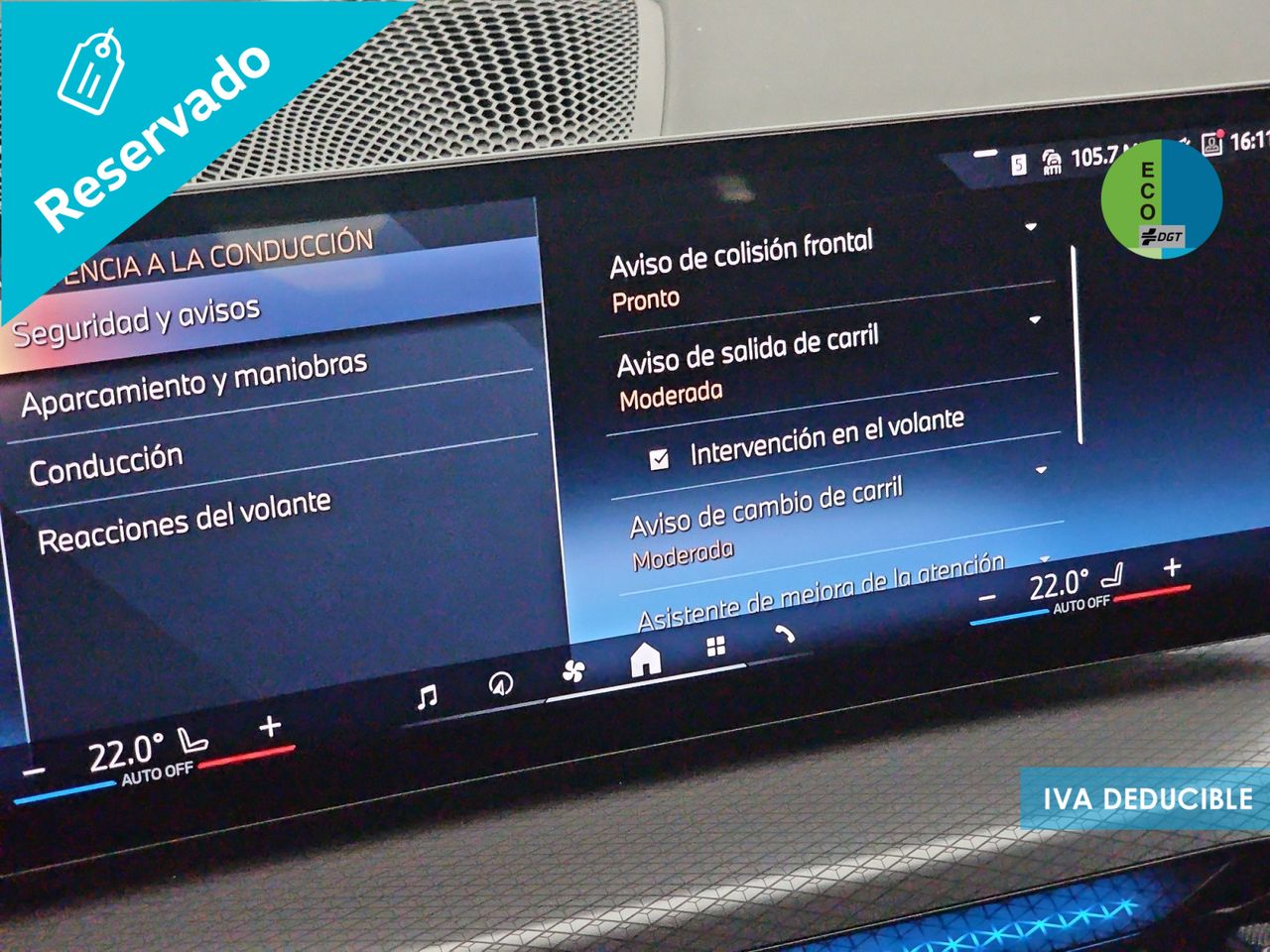 - Sistema de distancia de aparcamiento delanteros con sensor, sistema de distancia de aparcamiento traseros con sensor y cámara, sistema de distancia de aparcamiento en los lados con sensor