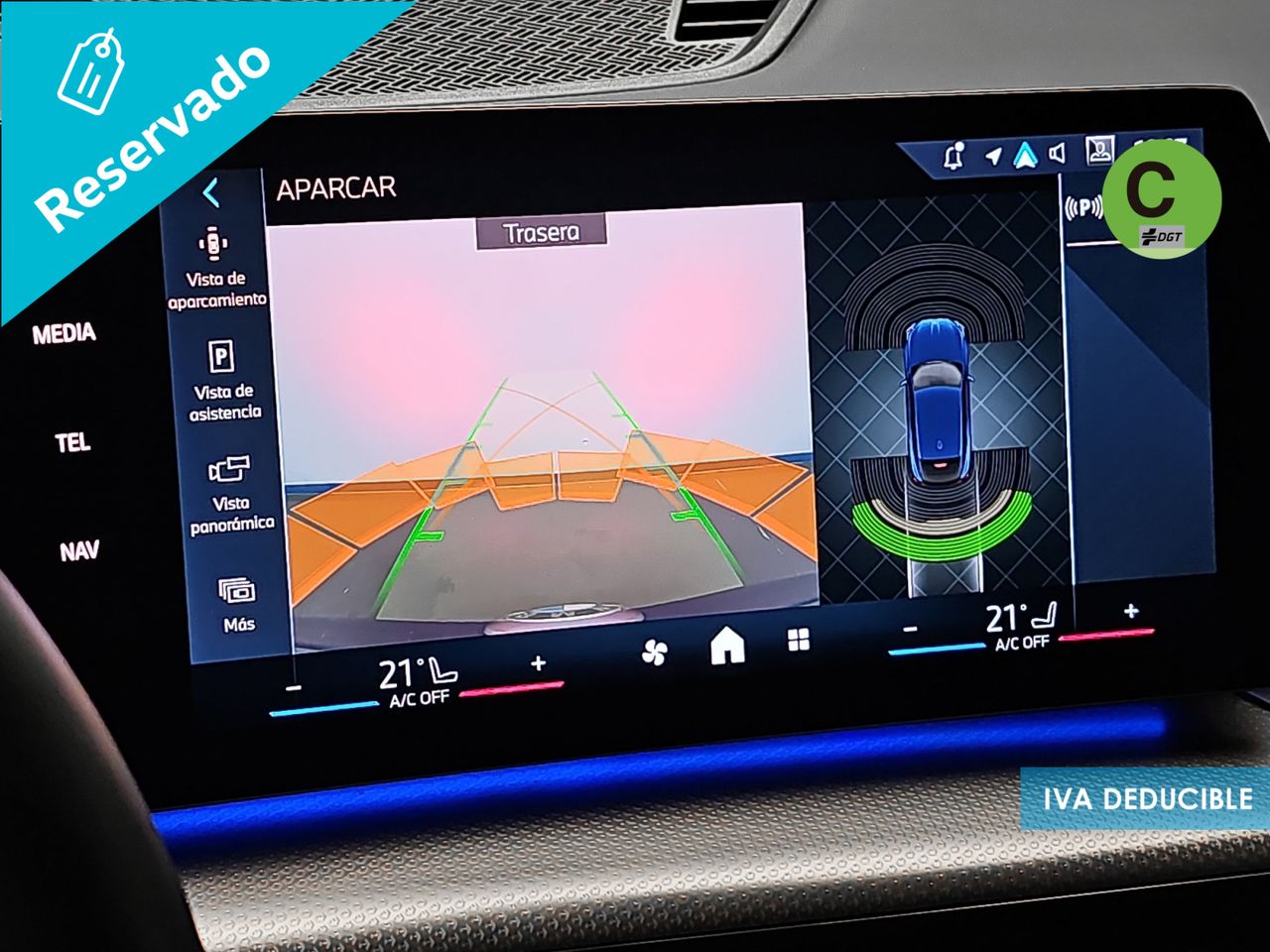 - Sistema de distancia de aparcamiento delanteros con sensor, sistema de distancia de aparcamiento traseros con sensor y cámara, sistema de distancia de aparcamiento en los lados con sensor