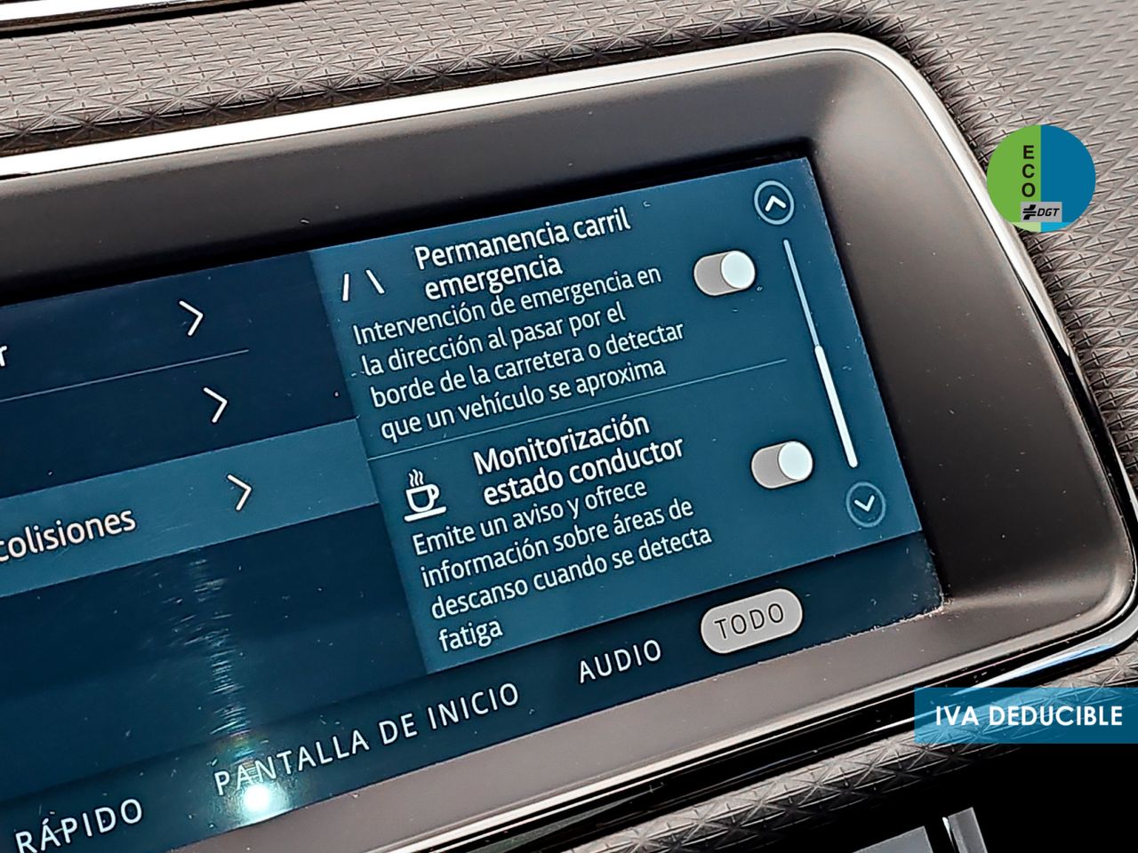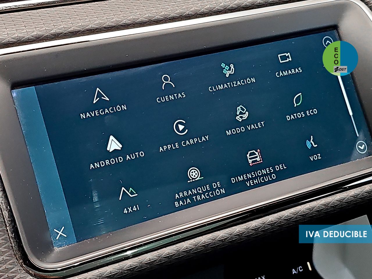 - Sistema de ventilación con pantalla digital y filtro de pólen controles en pantalla táctil y calefacción del motor