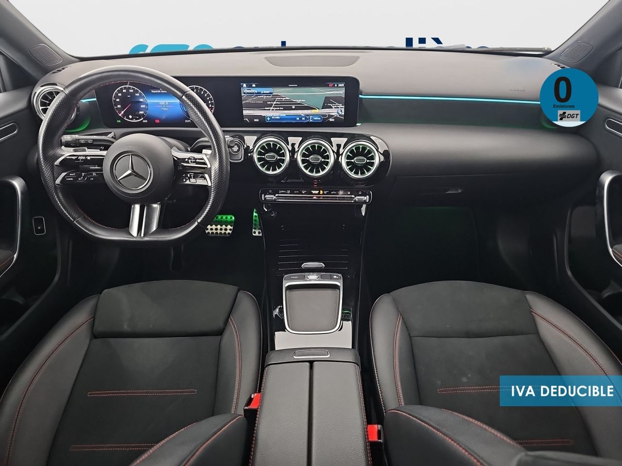 - Asientos de tela (material principal) y de cuero sintético (material secundario)