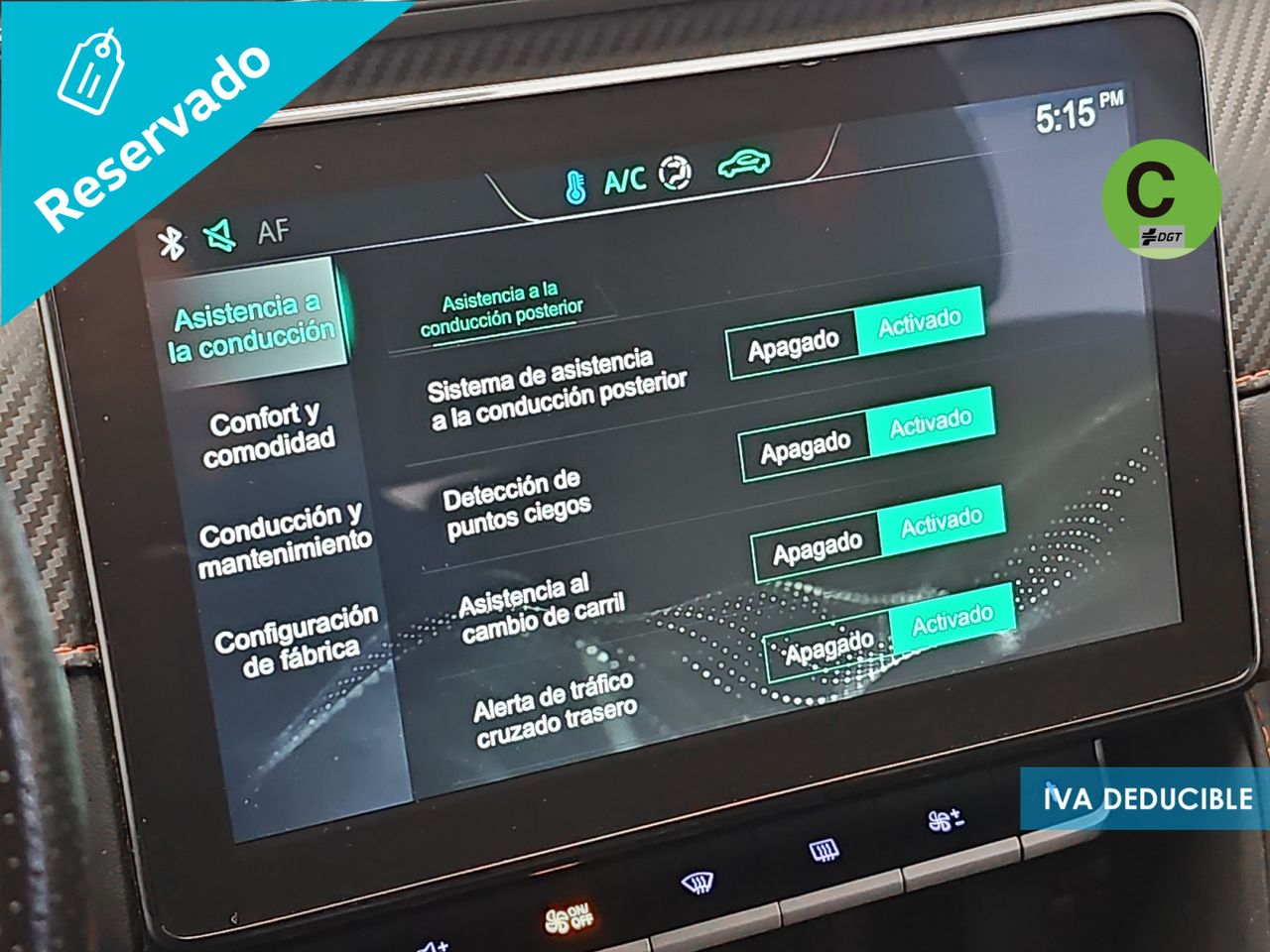 - Sistema de ventilación con pantalla digital, filtro de pólen y filtro de carbón activo controles en pantalla táctil y calefacción del motor