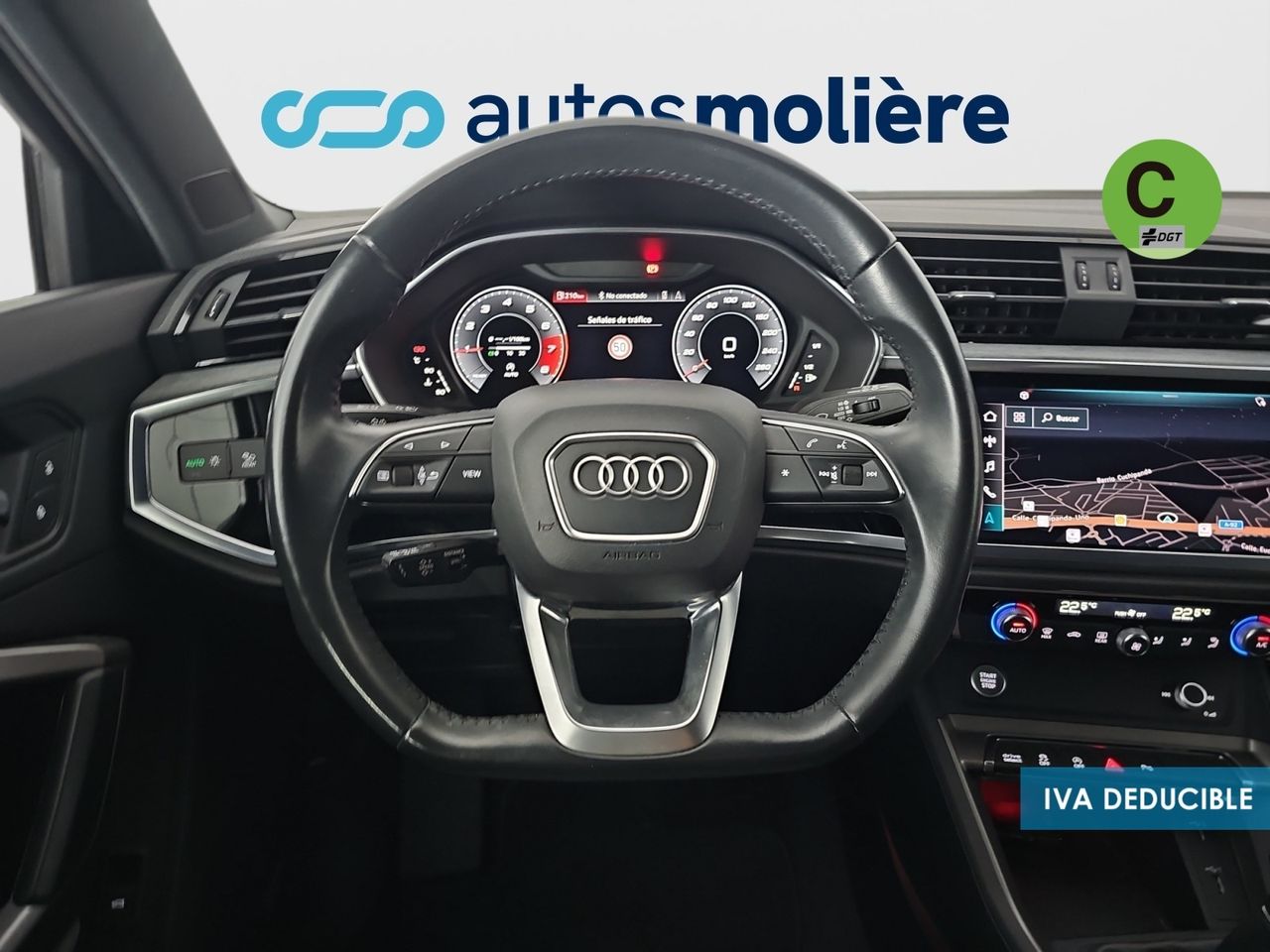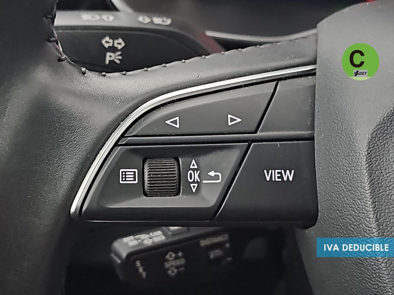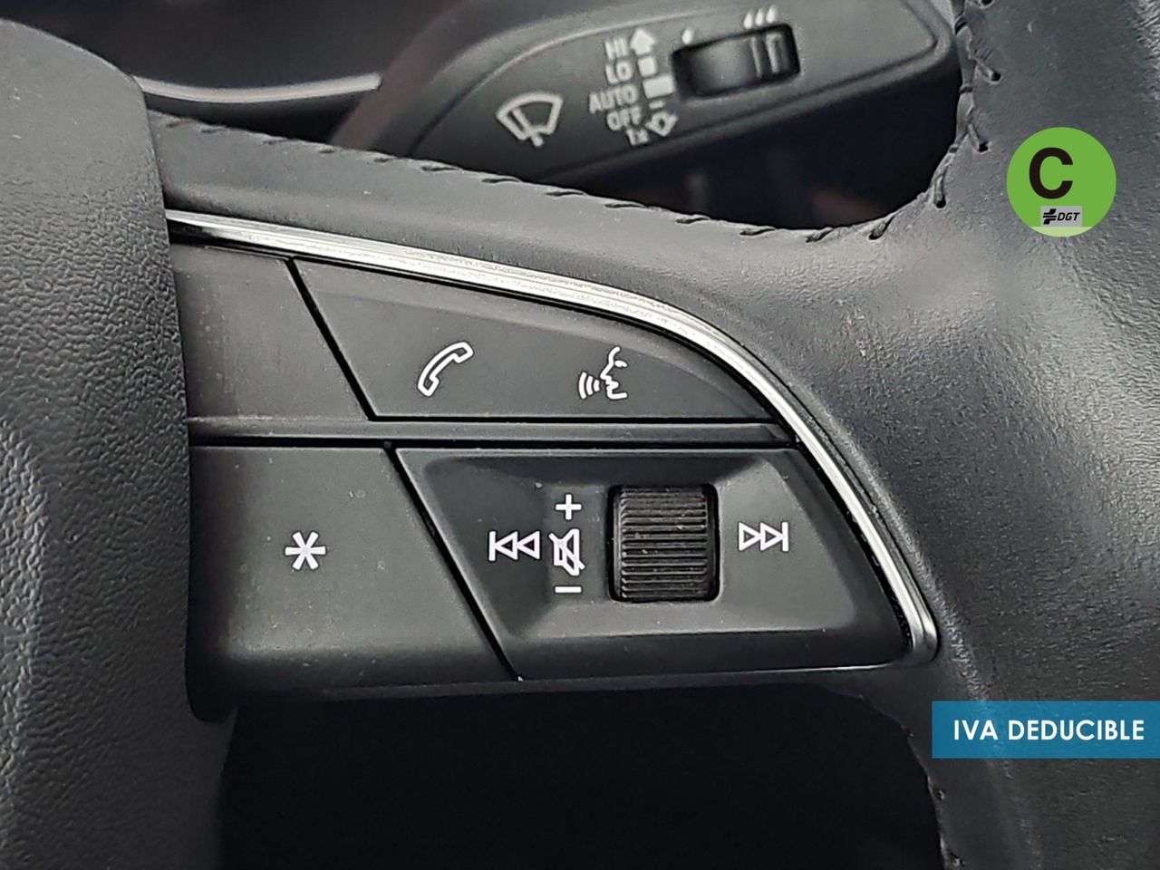 - Volante de cuero contorno deportivo en diseño de 3 radios con multifunción plus, achatado en la parte inferior